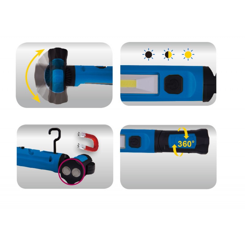 Base pivotante magnétique à 170° + corps pivotant à 360° + crochets